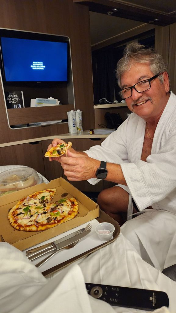 We left port at 7pm and Joe and I cushed into our room pretty quickly. After our big day out, staying in for a bed picnic seemed appropriate.